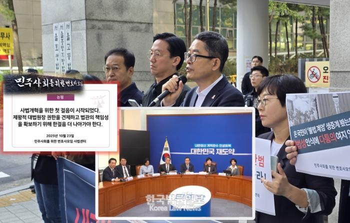 민변 사법센터는 “여당의 개혁안이 논의의 첫걸음이라면, 사법행정권 분산과 법관의 책임성 확보라는 미완의 개혁 과제가 반드시 이어져야 한다.”면서, “사법부 역시 방어적 태도로 일관할 것이 아니라 국민의 신뢰 회복을 위한 제도적 논의에 적극적으로 참여해야 한다.”고 요구했다.