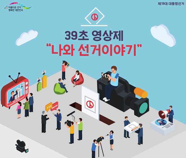 중앙선거관리위원회(위원장 김용덕)는 제19대 대통령선거를 앞두고 유권자가 선거에 참여하는 주체라는 인식을 제고하고, 모두가 화합·소통하는 선거문화를 만들기 위해 중앙선관위원장상과 총 1천여만원의 상금을 수여하는 <39초 영상제, “나와 선거이야기”> 공모전을 개최한다고 20일 알렸다.